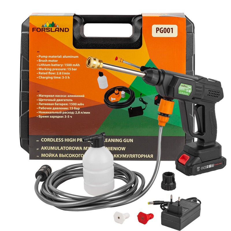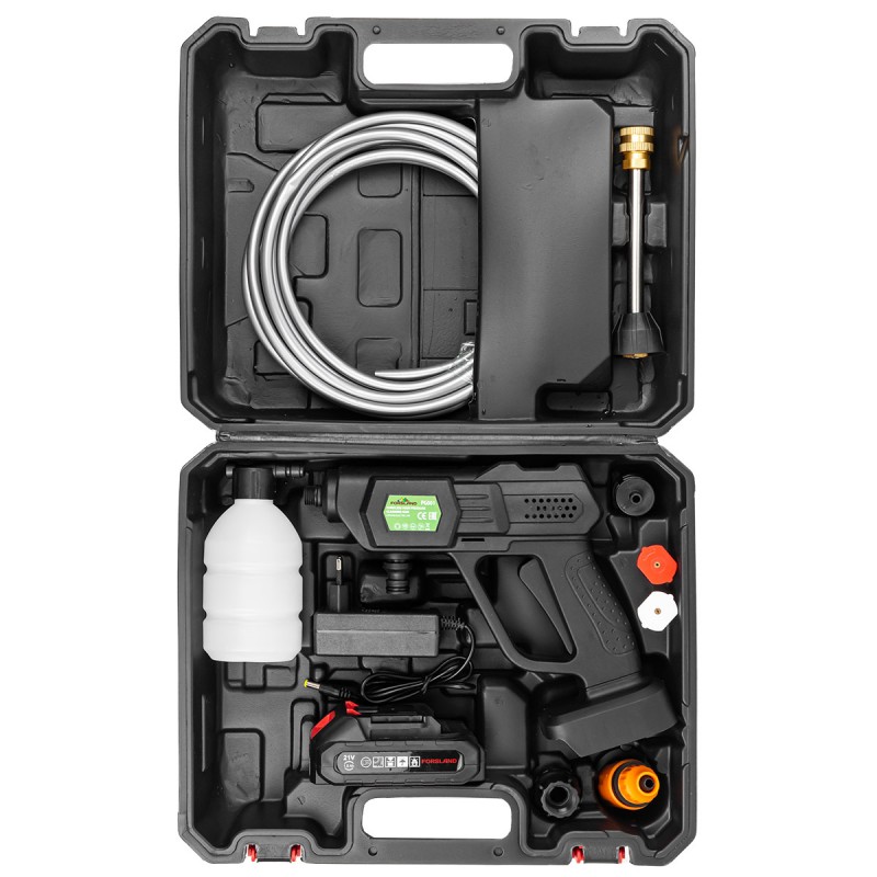 Акумуляторна мийка високого тиску FORSLAND FS-PG001 – це багатофункціональний та зручний пристрій, який стане чудовим помічником у будь-якому господарстві. Висока потужність, автономність, зручність використання та багата комплектація роблять її ідеальним вибором для будь-яких очисних робіт. Незалежно від того, чи потрібно вам помити автомобіль, очистити садові меблі або полити газон, мийка FORSLAND FS-PG001 подолає завдання на відмінно.