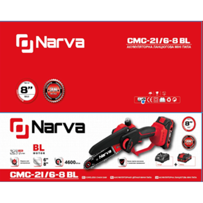 Нарівні з високою продуктивністю ланцюгової пили Narva на 21 В, ключові переваги включають довговічний безщітковий двигун та можливість роботи з двома довжинами шин та ланцюгів, що забезпечує гнучкість при різанні різних матеріалів та обсягів роботи. Компактна блокова конструкція та легкість в обслуговуванні роблять її зручною як для домашніх майстрів, так і для тих, хто регулярно виконує садові роботи. А завдяки автономності акумуляторної схеми ви заощаджуєте час і не залежите від наявності розетки в зоні роботи.