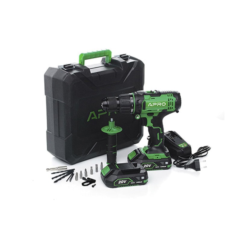 - Дриль-шуруповерт APRO 20В, 2А, 20HD 2 АКБ, ЗУ, кейс 895032