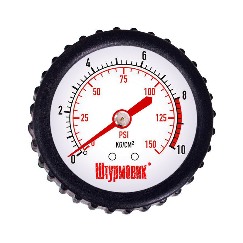 - Вбудований манометр – моментальний контроль тиску без додаткового приладу.