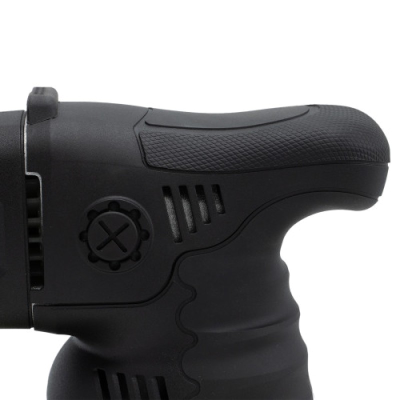 Машина оснащена эргономичной конструкцией, что делает её удобной в эксплуатации. Ручка имеет прорезиненные вставки, что обеспечивает надёжное сцепление с инструментом и предотвращает скольжение даже при продолжительной работе. Вес модели составляет 3 кг, что позволяет комфортно удерживать её в руках на протяжении длительного времени, не чувствуя сильной усталости. Также в комплекте идёт дополнительная передняя ручка, что добавляет удобства при использовании, особенно для новичков.