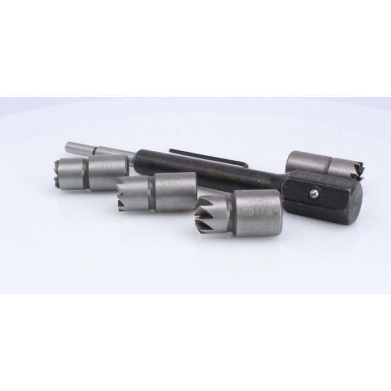 Все развертки длиной 38 мм, специальная геометрия для деликатной обработки седел форсунок. Набор упакован в прочный и удобный футляр, который обеспечивает защиту фрез и быстрый доступ к инструментам в условиях сервисной станции. Комплект рассчитан на многократное использование в рамках профессионального сервиса.