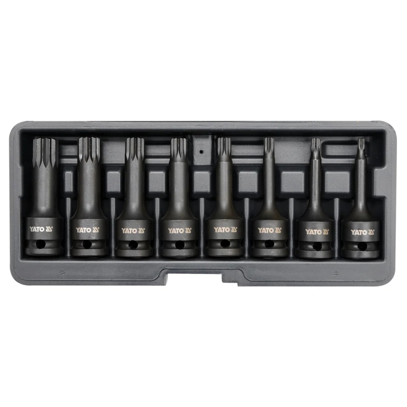 Набор насадок отверточных ударных SPLINE 1/2" Yato SPLINE 1/2" M5-18 8 шт YT-1069 — это надежный инструмент для профессионалов и домашних мастеров, которым важна прочность, точность и долговечность. Он создан для интенсивной эксплуатации в условиях механической промышленности и сервисного обслуживания, где требования к качеству крепежа выше среднего. Благодаря прочной стали CrMo, фосфатированному покрытию и оптимальной геометрии головок набор обеспечивает эффективную работу даже при сложных работах под ударом.