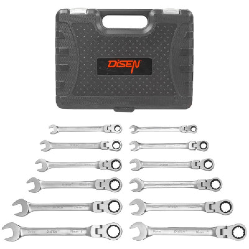 Набор ключей комбинированных трещоточных с шарниром DISEN DI-DSS1601F - ваш надежный помощник при выполнении разнообразных задач. Он обеспечивает надежность, удобство и эффективность, будь вы профессиональным мастером или занимаетесь ремонтом дома.