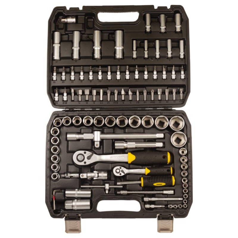 Набор включает в себя насадки торцевые и биты разных размеров, позволяя подобрать нужный инструмент для любой работы. Обретите уверенность в каждом движении благодаря рукояткам с храповым механизмом и реверсом, которые обеспечивают точность и комфорт в использовании.