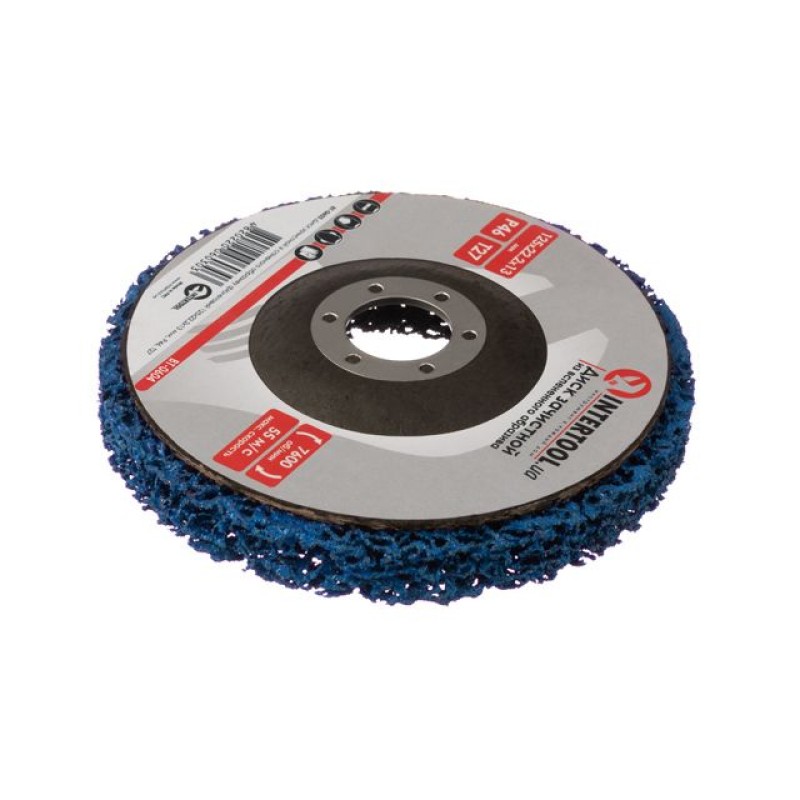 Диск зачистной из вспененного абразива голубой 12522,213 мм, P46, T27 INTERTOOL BT-0604 - это пористый диск, изготовленный из абразивного нетканого волокна. Он предназначен для быстрой и эффективной зачистки поверхностей от старых лакокрасочных покрытий, ржавчины, герметиков и любых неровностей. Также этот диск идеально подходит для очистки сварных швов и нержавеющей стали.