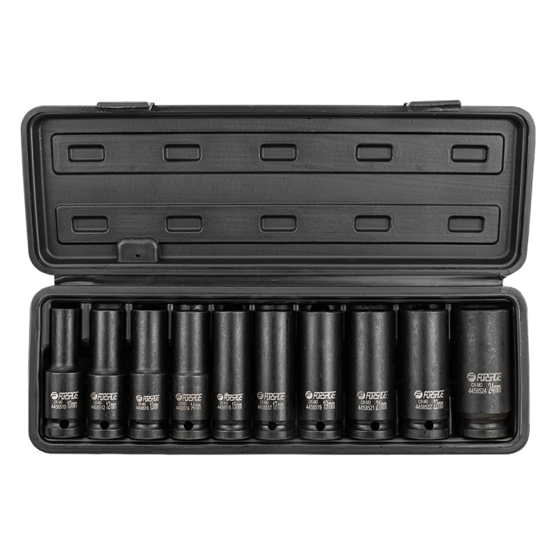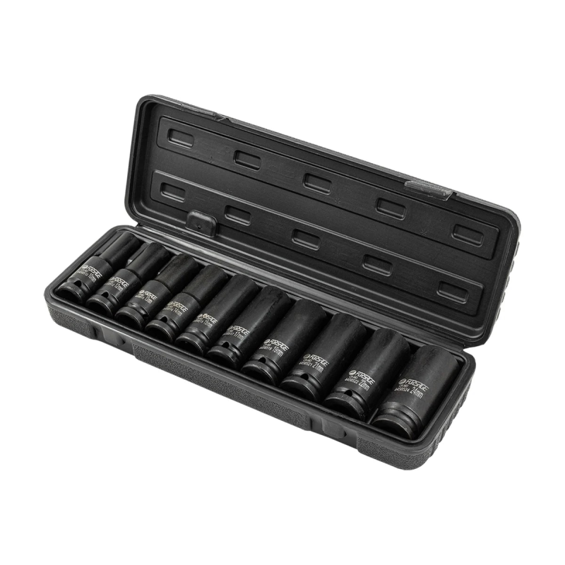 - Тип головок: ударні глибокі торцеві головки - оптимальні для роботи в обмежених просторах та на шпильках.