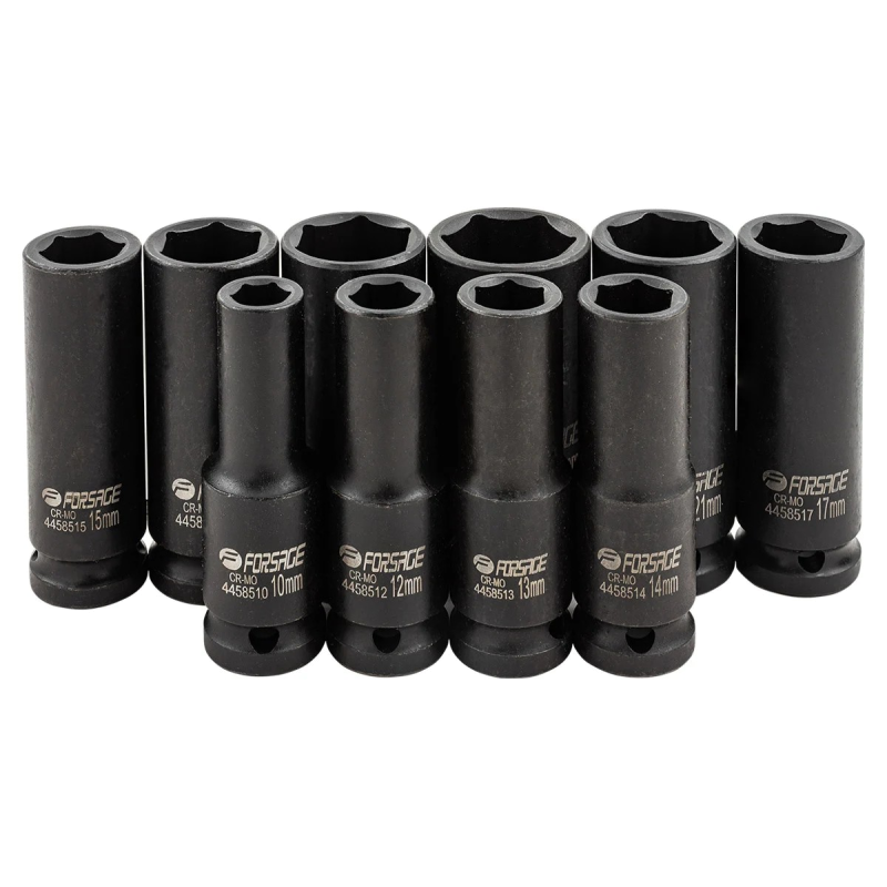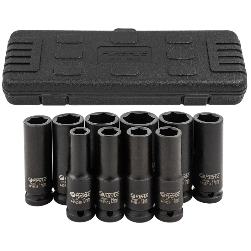 Якщо ви працюєте з гайковертом або ударним ключем і вам потрібні міцні, точні та доступні голівки, цей набір Forsage F-4107-5MPB стане надійною опорою ваших робіт. Ударні глибокі голівки розраховані на високі динамічні навантаження та забезпечують довговічність навіть при інтенсивному використанні в автосервісі, на будівництві та побутових умовах.