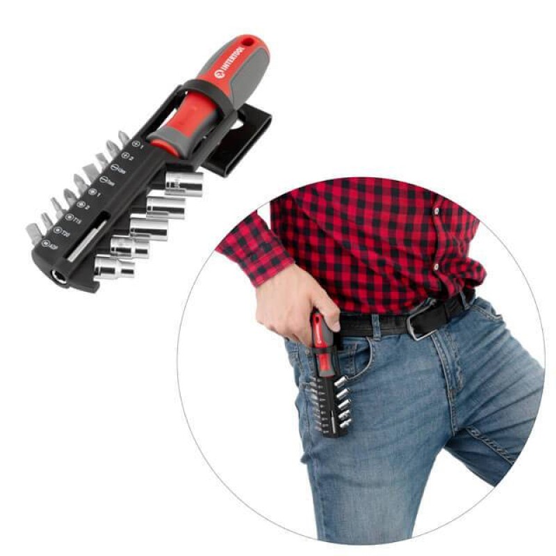 Викрутка з магнітним тримачем і набором насадок 15 в1 Intertool VT-3343 є незамінним інструментом в арсеналі будь-якого майстра, будь то домашній ремонт або професійна майстерня. Цей компактний та зручний набір допоможе вам впоратися з широким спектром завдань, пов'язаних із монтажем та демонтажем різьбових з'єднань різних типів.