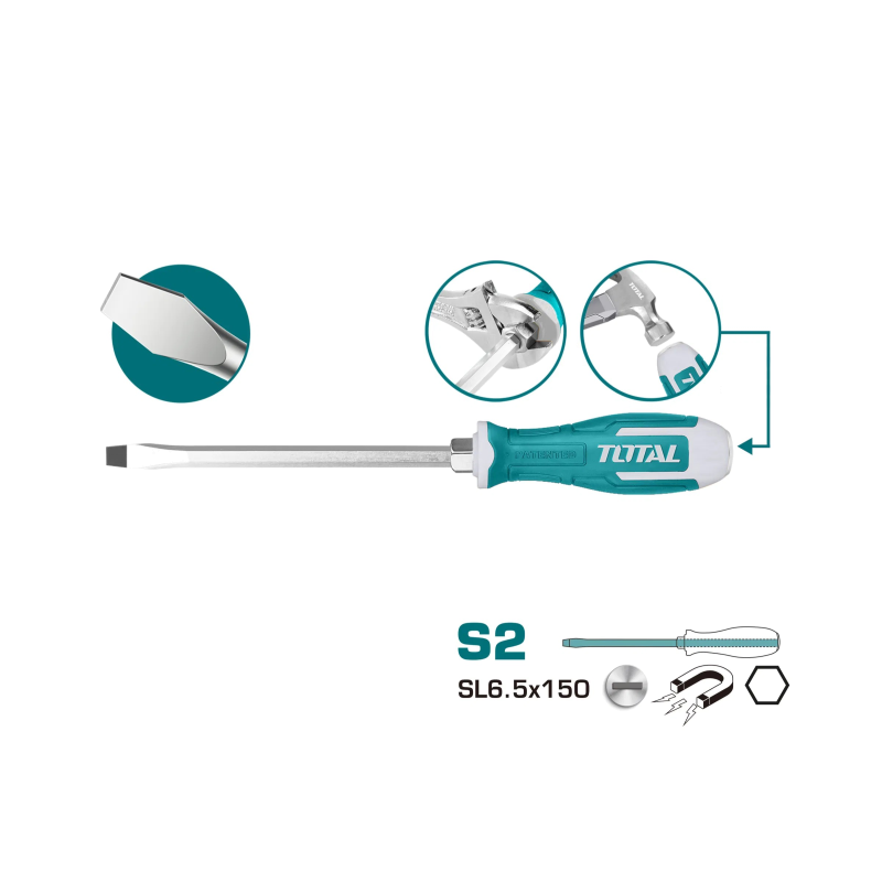 Якщо ви шукаєте надійний інструмент для роботи з проблемними різьбовими з'єднаннями, то викрутка від бренду TOTAL стане вашим незамінним помічником. Цей інструмент спеціально розроблений для ефективного зняття кріплення, яке, здавалося б, застрягло назавжди. За допомогою удару металевого молотка по ручці викрутки, ви зможете легко звільнити навіть заклинені гвинти і гайки.